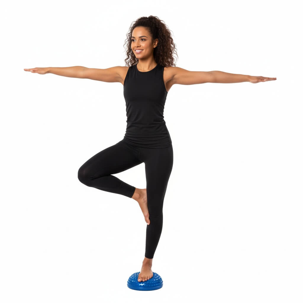 ¡Rompe la monotonía con el Mini Bosu – Media Pelota de Equilibrio! 🔵🔥 Esta herramienta compacta es pura dinamita: su diseño inestable obliga a tu core, piernas y glúteos a trabajar el triple solo para mantener la postura. 🏋️‍♀️✨