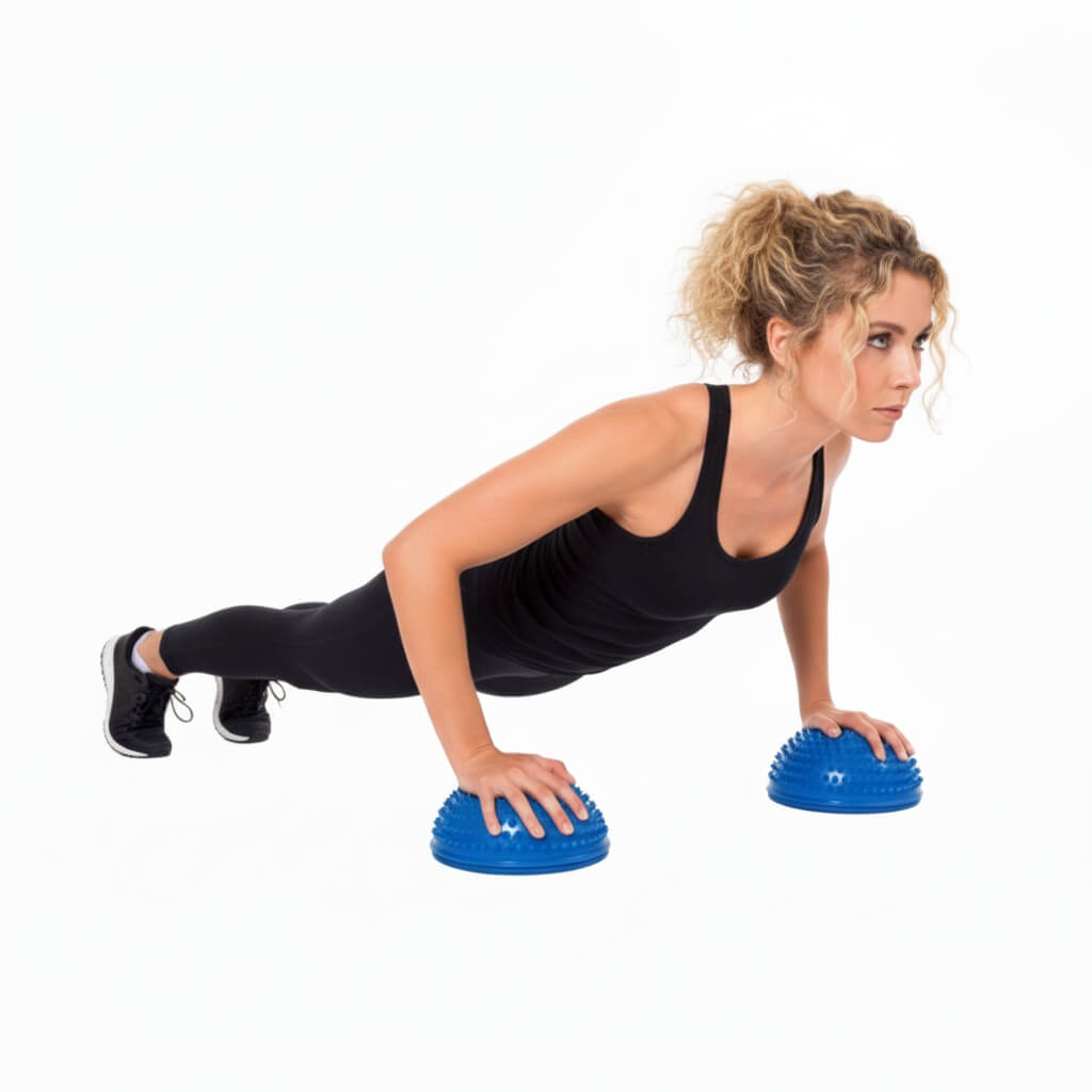 Ya sea para intensificar tus flexiones o rehabilitar lesiones, su textura de “erizo” estimula la circulación y te da un agarre total. ¡Convierte cualquier sala en un gimnasio profesional y consigue unas piernas de acero! 🧘‍♂️🛡️